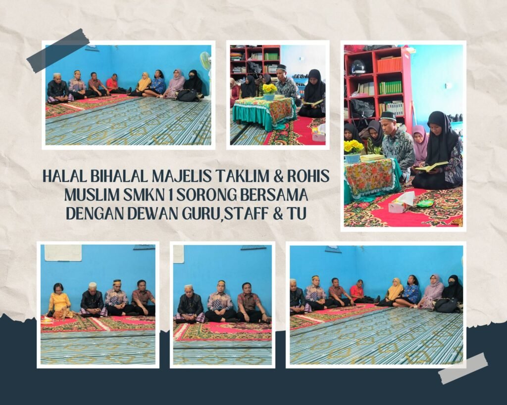 Bertempat di mushola SMKN 1 Sorong,Majelis Taklim dan Rohis Muslim melaksanakan Halal Bihalal bersama Guru & Tata Usaha,adapun dengan adanya kegiatan ini dapat mempererat tali silahturahmi antara Guru,TU & Peserta Didik di lingkungan SMKN 1 Sorong.
