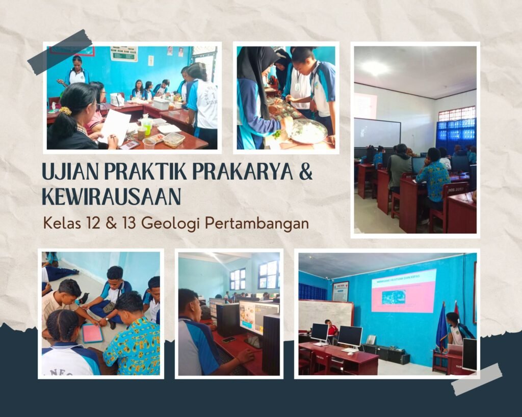 Pada hari Jumat 23 Februari 2024 telah dilakukan ujian praktek hari ke 5 yang dilakukan siswa-siswi kelas 12 & 13 jurusan Geologi pertambangan.Yang mana ujian praktek ini mengenai projek kreatif dan kewirausahaan.adapun ujian ini ada yang praktek promosi online,laporan keuangan,pembuatan produk,serta membuat desain-desain dan lain sebagainya.(Elb.DKV1)