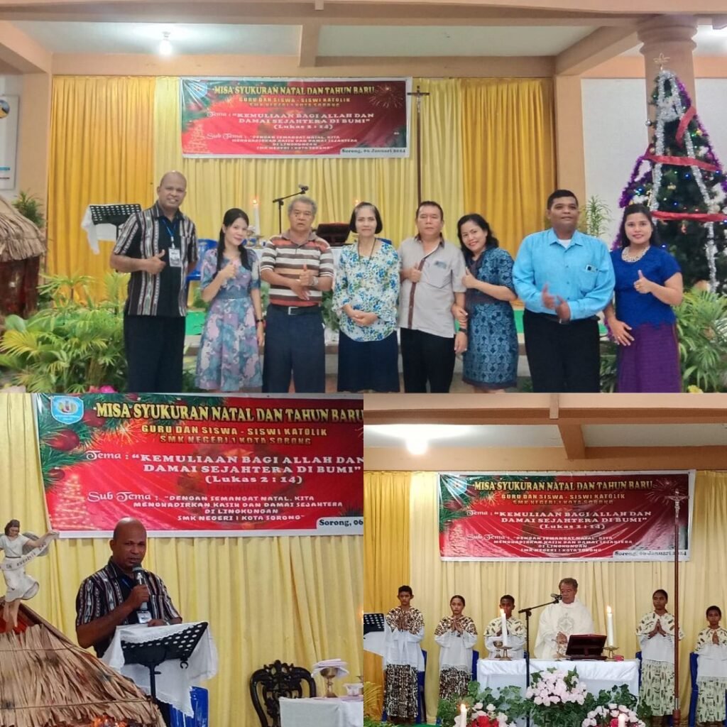 Kegiatan Syukuran Natal n Tahun Baru Siswa-siswi Katolik SMK Negeri 1 Kota Sorong,yang dilaksanakan di Aula Yonatan Fatem Remu Kota Sorong dihadiri oleh Ibu Kepala SMKN 1 Sorong dan segenap guru katolik SMKN 1 Sorong Papua Barat Daya source : https://www.facebook.com/klemens.ell.5