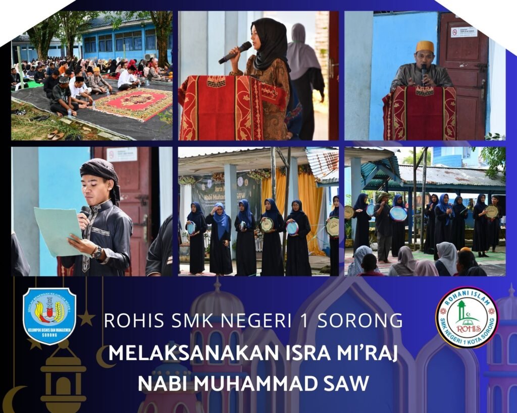 Pada tanggal 27 Januari 2025 telah dilaksanakan Kegiatan Isra Mi’raj Nabi Muhammad Saw yang diselenggarakan oleh Rohis Islam SMKN 1 Sorong. Dalam kegiatan ini di hadiri juga oleh Majelis Taklim SMKN 1 Sorong beserta Guru & Staf Tata Usaha.