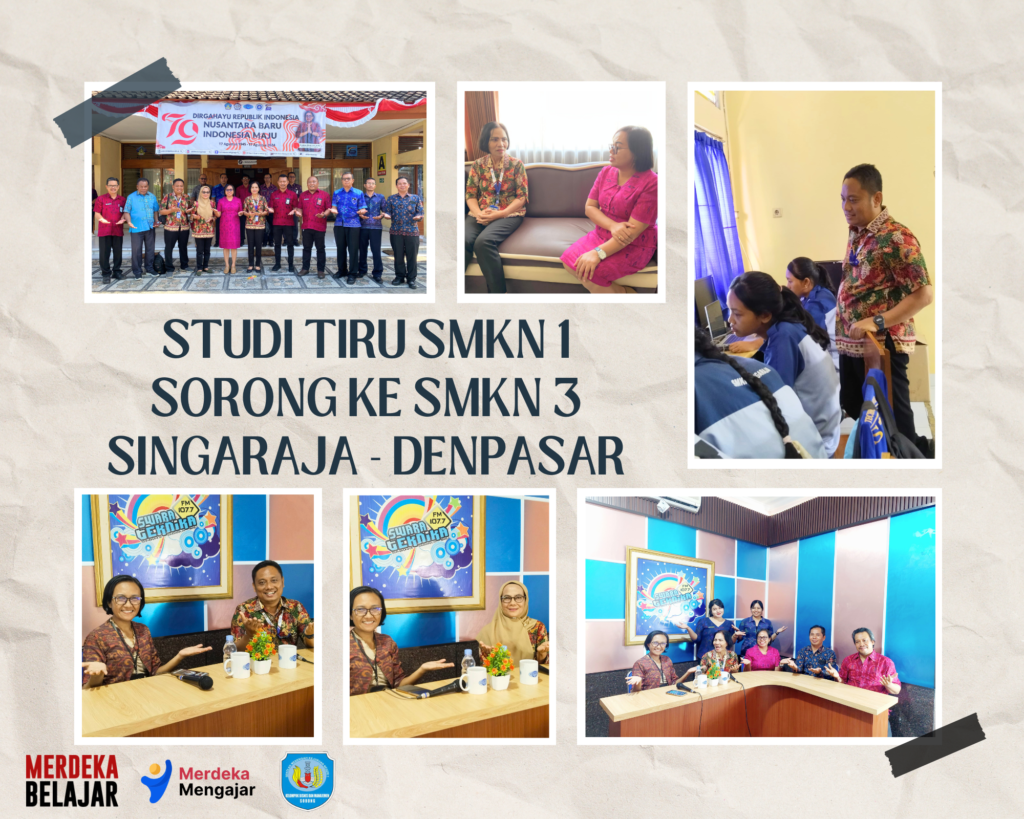 SMKN 1 SORONG melakukan studi tiru di SMKN 3 SINGARAJA DENPASAR, adapun agenda kegiatan tersebut di ikuti oleh Kepala SMKN 1 SORONG Ibu Johanna Kartini Pontolaeng,S.Pd, Wakasek Kurikulum Ibu Ngesti Wulandari,S.Pd, Kakomli DKV Bapak Anang Susilo Utomo,S.T.,Gr dan Ketua Komite Bapak Jack Susim. SMKN 1 Sorong diterima baik oleh Ibu Kepala Sekolah SMKN 3 Singaraja […]