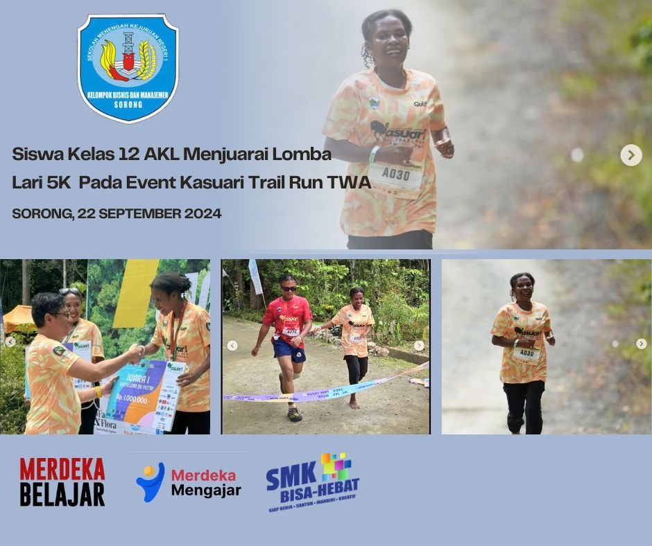 Pada Tanggal 15 September 2024,Siswa Kelas 12 AKL atas nama Dessy Sapisa seorang gadis asli Papua yang lahir dari seorang ibu bernama Enggelina Sapisa Sani.Menjuarai Lomba Lari 5K pada event Kasuari Trail Run TWA. Taukah kalian ada hal yang menarik dari Dessy saat itu sob? Ya, kalau kalian perhatikan, Dessy berhasil melalui medan yang penuh […]